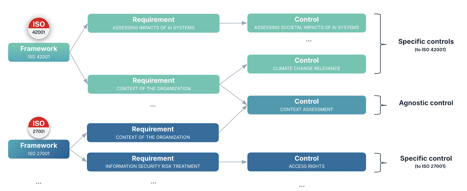 Take, for example, a data protection Control designed to reduce the risk of unauthorized access. This type of risk is ideally assessed in terms of both frequency and potential impact. Its lifecycle, from identification to mitigation and monitoring, along with the assigned accountability, can be nearly identical whether it falls under the scope of ISO 27001 or ISO 42001.