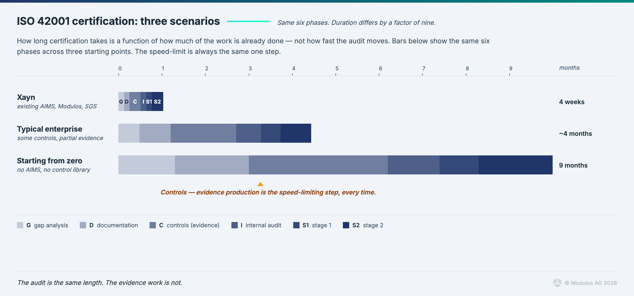 The implication for buyers is this: the Xayn timeline is a ceiling, not a target. Your timeline depends on how close your AIMS is to operating condition on day one. If you are starting closer to zero, plan for three to six months.